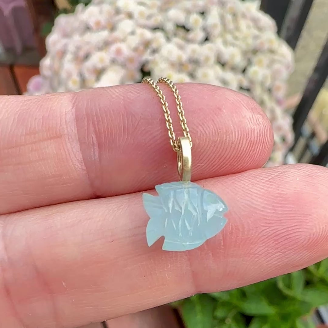 14 kt No.31 fisk transparent changerende labradorit. Lille