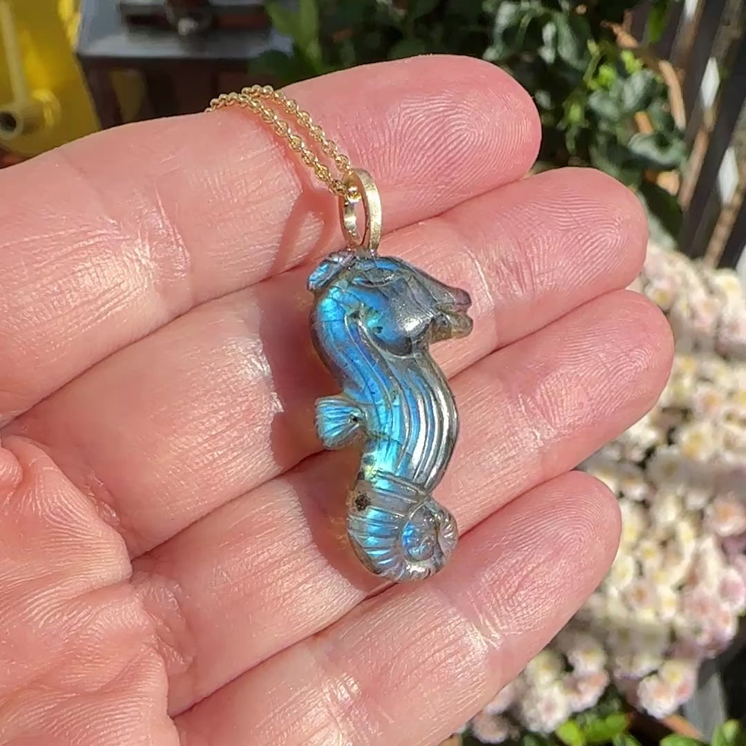 14 kt. Søhest No.35 blå, grå, sort labradorit X stor