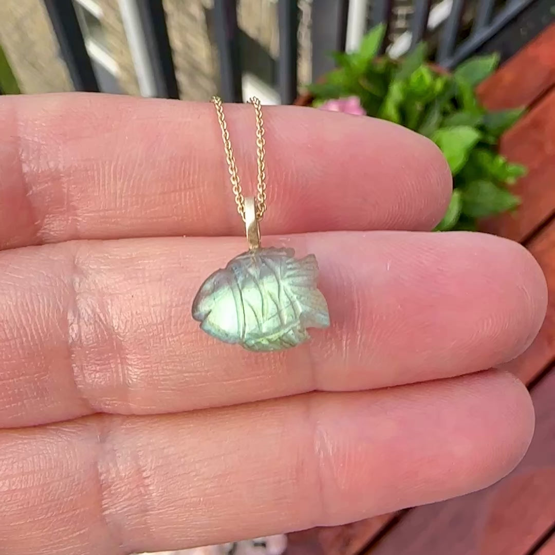 14 kt No.26 fisk transparent changerende labradorit. Mini