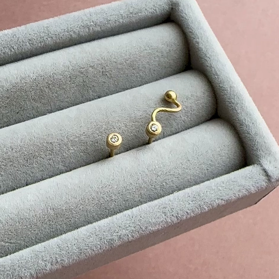 Dette sæt består af 2 stk. ørestikker i 18 kt. guld og med i alt 0.04 ct. brillant.