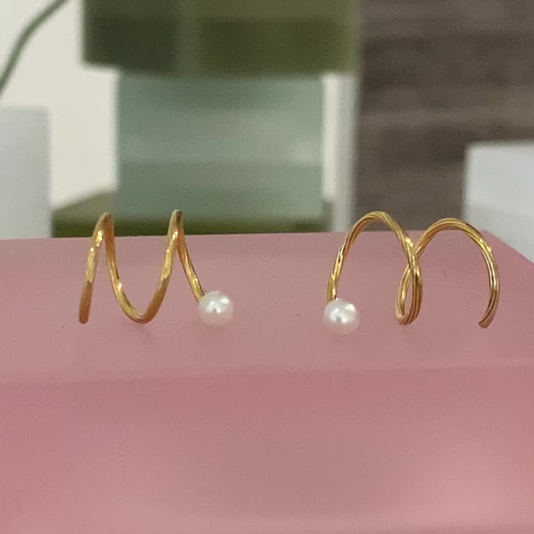 Håndlavet snoet ørering i forgyldt sterling sølv med perle.